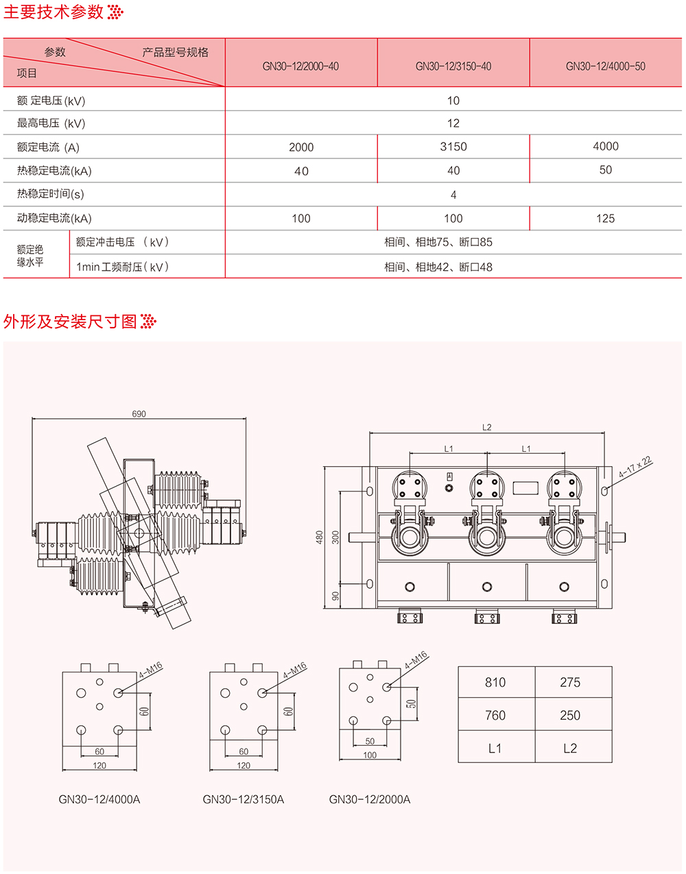 GN30-12/3150A戶內旋轉式高壓隔離開關