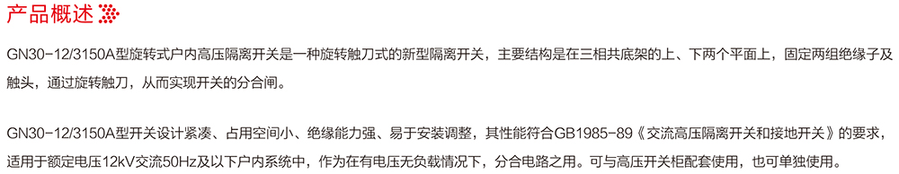 GN30-12/3150A戶內(nèi)旋轉式高壓隔離開關